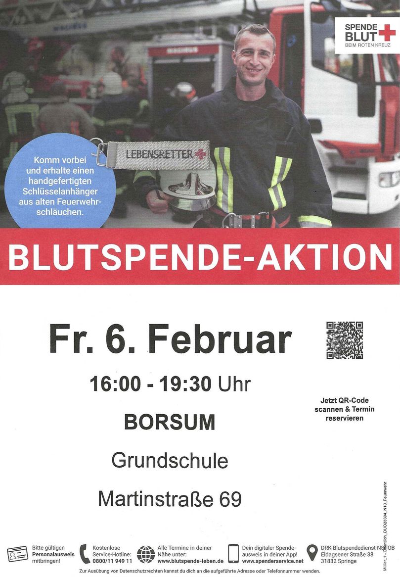 06.02. 16:00 Uhr Blutspenden, Grundschule Borsum